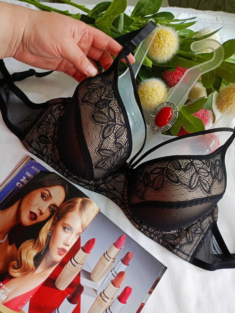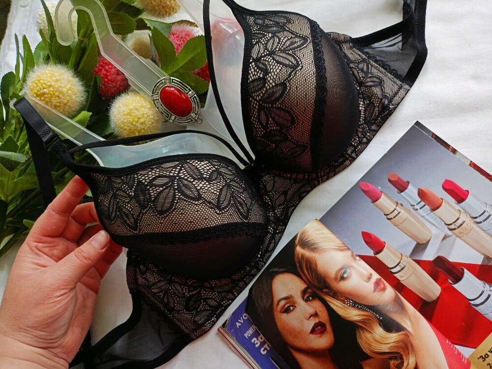 розкішний звабливий чорний з бежевим бюстгальтер з портупеєю