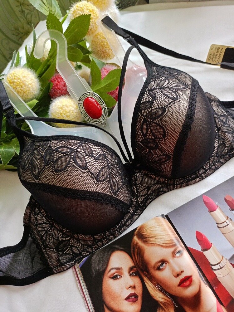 479265розкішний звабливий чорний з бежевим бюстгальтер з портупеєю